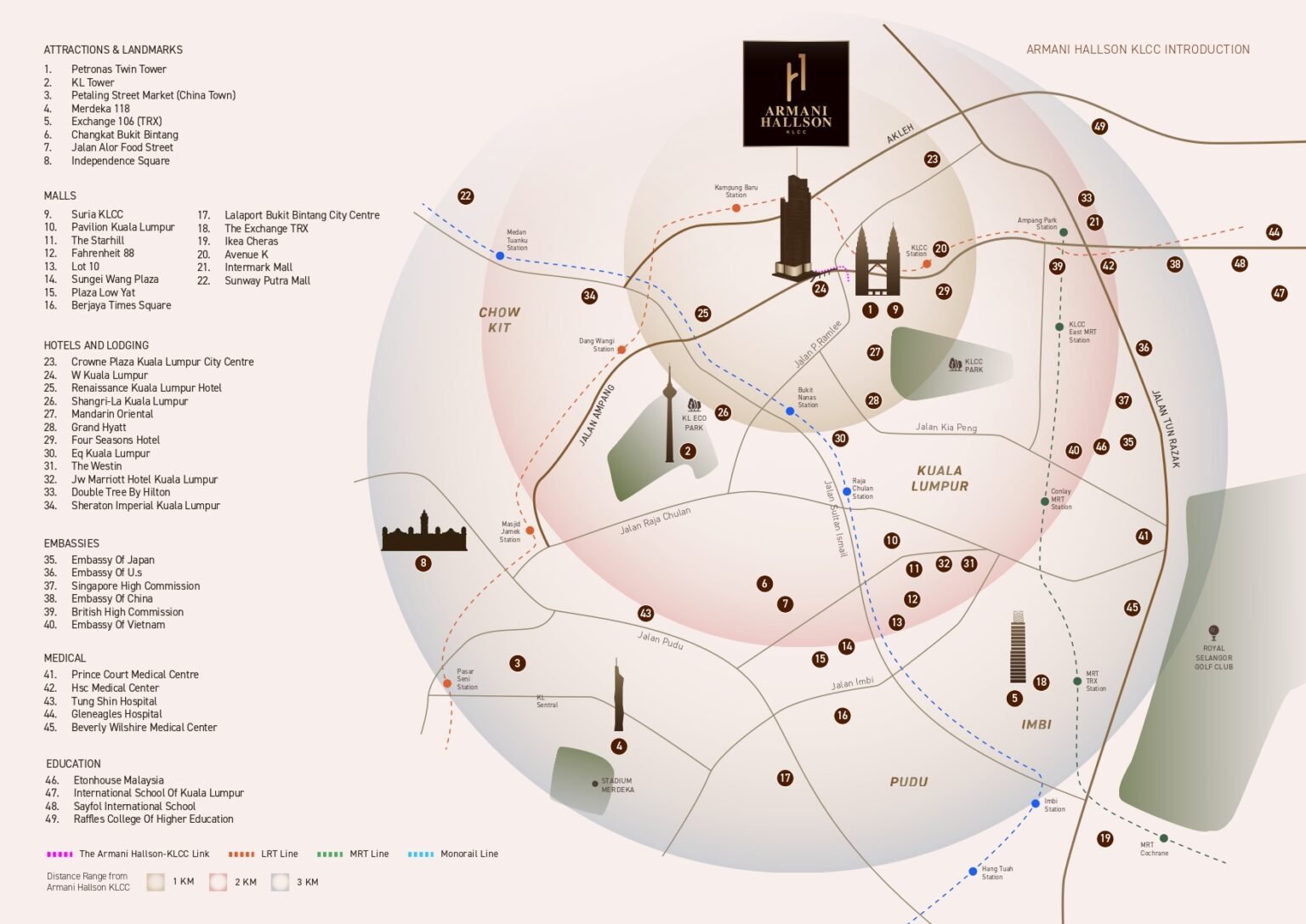 Situated in the heart of KL’s central business district and close to Tun Razak Exchange, ARMANI HALLSON KLCC is surrounded by key business centres and corporate offices, making it convenient for professionals to commute and network.