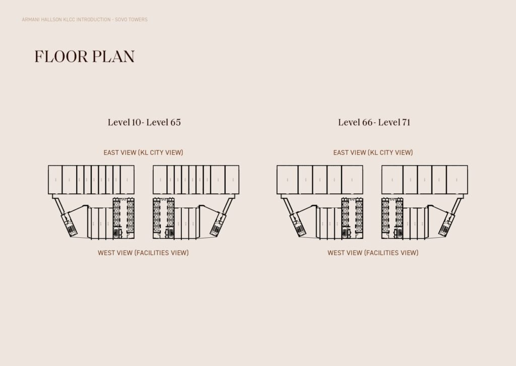 An icon of modern sophistication and immaculate vistas, ARMANI HALLSON KLCC stands tall against the city skyline. Its distinctive architecture ensures every SOHO and SOVO unit enjoys panoramic views, reflecting the ambition and grandeur of its occupants who are entrepreneurs and investors.