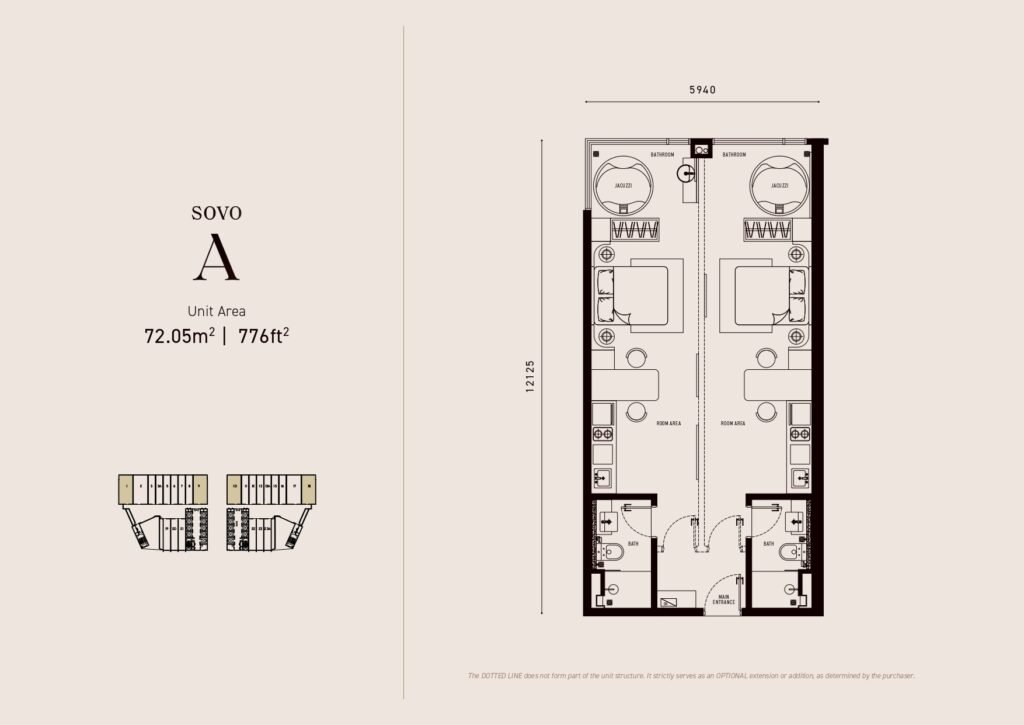 - Type A : 776 sqft (224 units)
