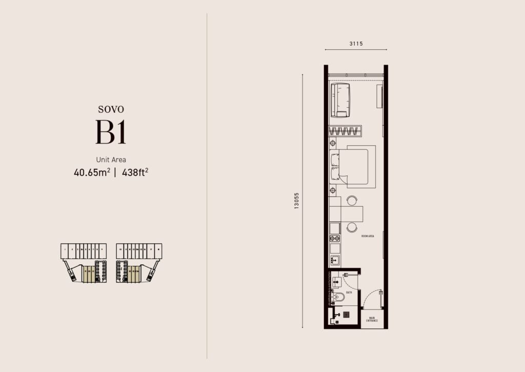 - Type B1 : 438 sqft (372 units)