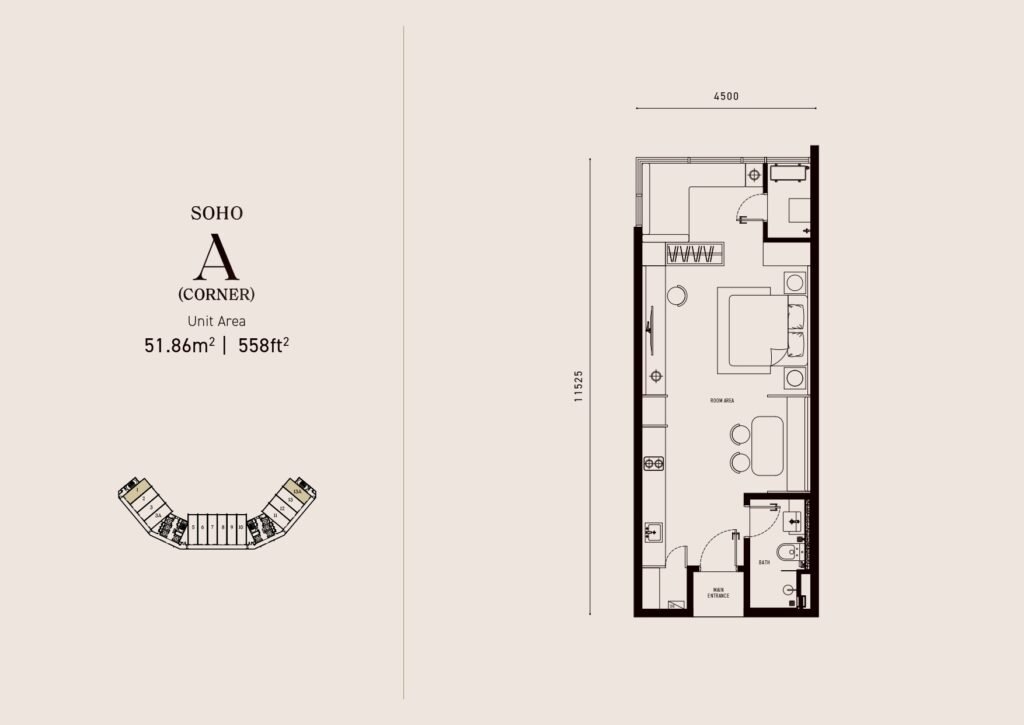 - Type A : 558 sqft (456 units)